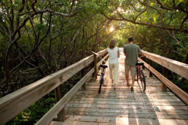 Head to Tarpon Bay Explorers (Tues.-Sat.) at the J.N. “Ding” Darling National Wildlife Refuge, where you can rent a bike, canoe or kayak and meander through the natural beauty at your own pace, or enjoy a guided tour via kayak or tram. You can also tour Wildlife Drive in your own car – or golf cart.